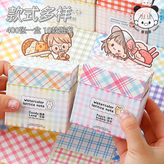 400Sheet/Lot Watercolor Plaid Note Paper- Non-Stick NT211