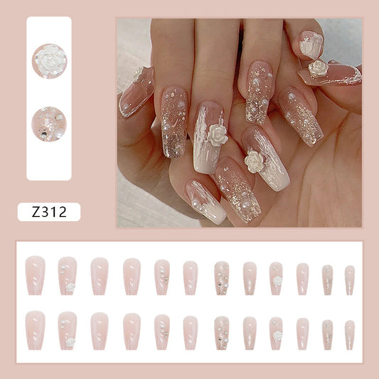 Pearl Camellia Fake Nail Finished Patch #N2051