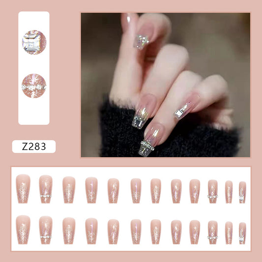 Wearable Long Pink Star Diamond Nail Patch #N1889