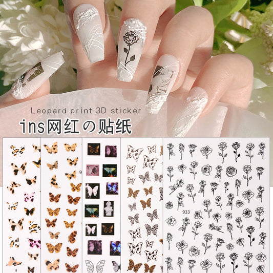 Leopard Print Butterfly Decorative 3d Waterproof Nail Sticker #s5235