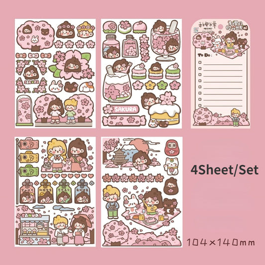 Cute Girl Sakura Sticker Black and Pink 4sheet/lot #s1146