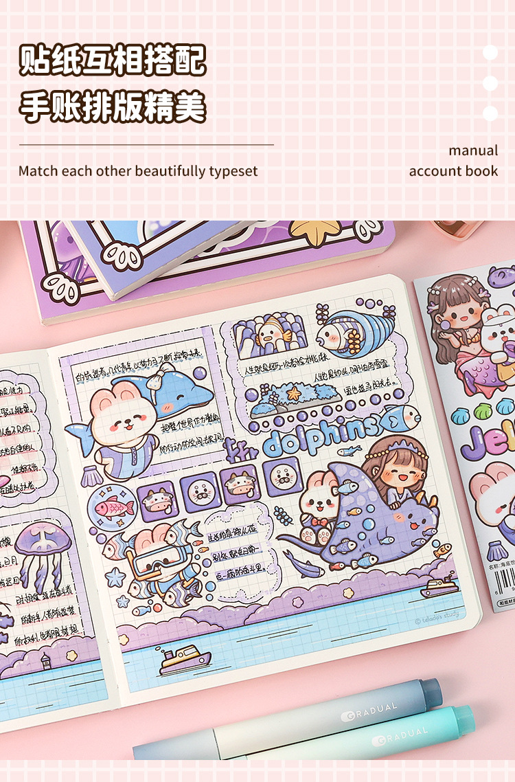 Underwater World Series Cute Cartoon Characters Hand Ledger Diary Book #B9096