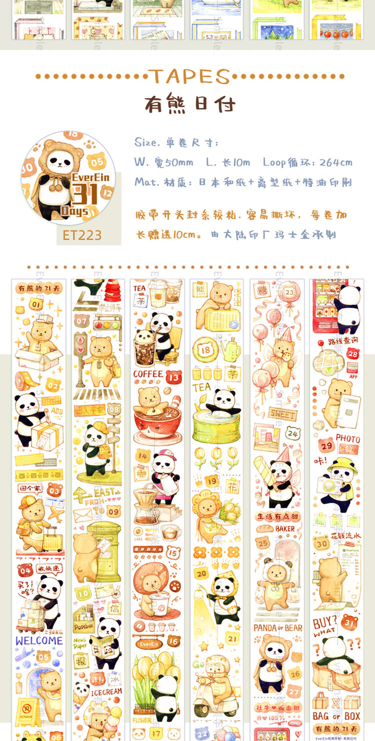Cute Panda Stickers Pretty Washi Tapes Sticker #S8108